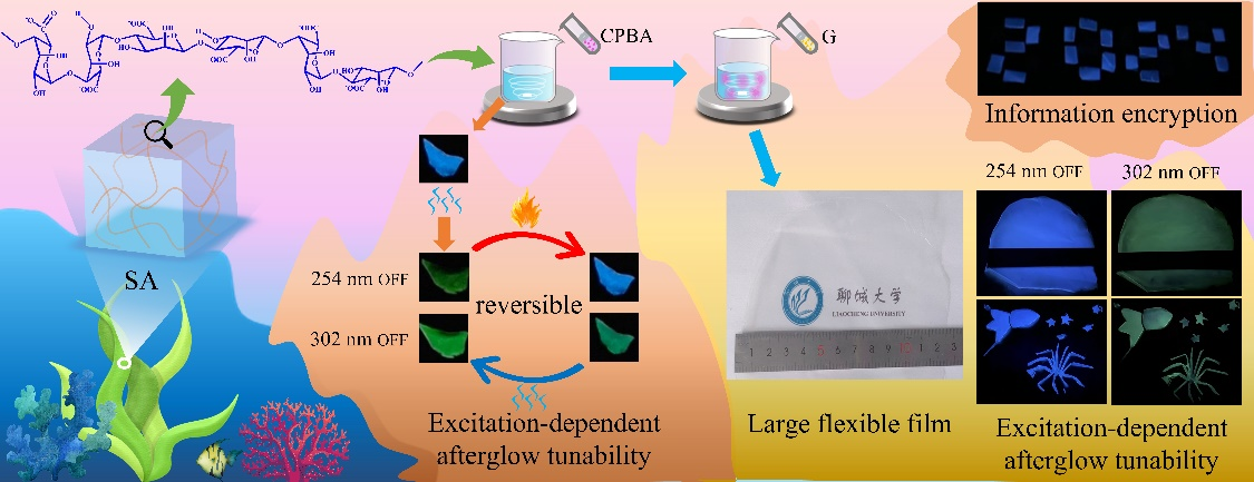 本研究为环保型柔性且发光颜色可调的聚合物基RTP材料制备提供了指导,并有助于将SA基材料的应用范围扩展到柔性显示领域。