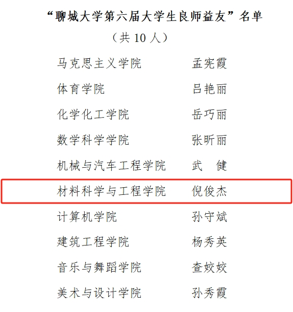 近日,伟德bv1946官网完成第六届“老员工良师益友”评选工作,材料科学公司高度重视、积极落实,经多层评选,公司倪俊杰教授当选。