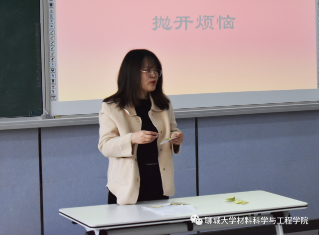 在活动中,大家通过游戏的形式放松心情。第一个环节是“同舟共济”的团体游戏。老师让同学们平均分组,随后将一张报纸铺到地面上,同学们思考方案,让最多的人同时站到报纸上并保持最长时间。通过这个游戏,同学们明白无论遇到什么困难,要做的是团结一致,只有齐心协力才能共渡难关。第二个环节为“抛开烦恼”。同学们在纸上写下疫情期间遇到的一些烦恼和问题,然后由杨淑茜老师随机选取问题,大家一起解决并给出建议。通过这个环节,老师能更好地了解同学们在心理上、生活上的一些问题,同学们也能够通过倾诉更好地释放心理上的压力。最后,杨淑茜老师对本次活动进行总结,希望同学们在疫情期间消除焦虑,适应逆境,调整心态,静等花开。
