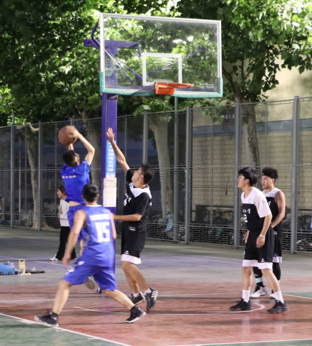 随着一声哨响,比赛正式开始,师生双方迅速进入状态,抢球、传球、投篮,队友间紧密配合,记分板上的数字不断变化,双方球员们愈战愈勇。投球时动作潇洒,拦球时针锋相对,激烈的竞赛对抗配合着双方球员精彩的抢断、帅气精准的投篮,引球员和观众发出声声喝彩。中场休息时,双方球员紧张地讨论着分工配合。球赛仍在进行,球员们精力充盈,跳跃、拦球,每一次进球、每一声呐喊,都是对篮球的热爱、对比赛的投入。最终,毕业生们在伟德bv1946官网的最后一场篮球比赛中成功战胜了老师,以青春的炽热为自己的老员工涯画上了圆满的句号。