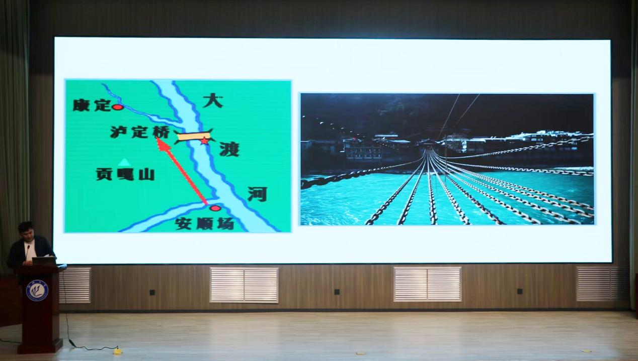 马老师以红军长征途中的一场战役——飞夺泸定桥为主题,介绍战役背景,剖析伟大长征精神的丰富内涵,教育引导员工传承红色基因,发扬红色传统,从伟大长征精神中汲取奋发前进的精神力量。