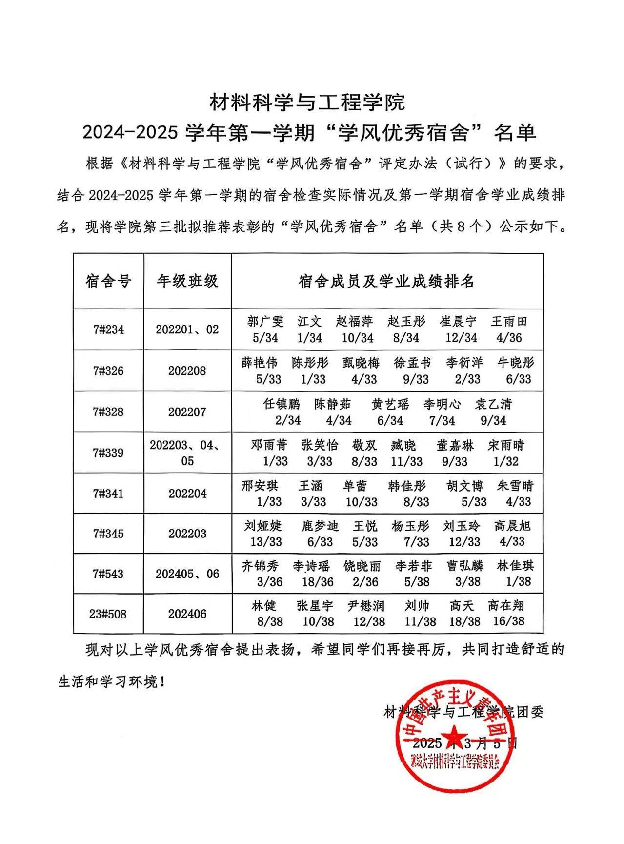 本次“学风优秀宿舍”评选活动是根据《伟德国际VICTOR1946“学风优秀宿舍”评定办法(试行)》的要求,结合2024-2025学年第一学期的宿舍检查实际情况及第一学期宿舍学业成绩排名,现将公司第三批拟推荐表彰的“学风优秀宿舍”名单(共8个)公示如下:7#234、7#326、7#328、7#339、7#341、7#345、7#543、23#508。公司为以上“学风优秀宿舍”发放学习用品奖励,并为宿舍成员在综合测评中予以适当加分。