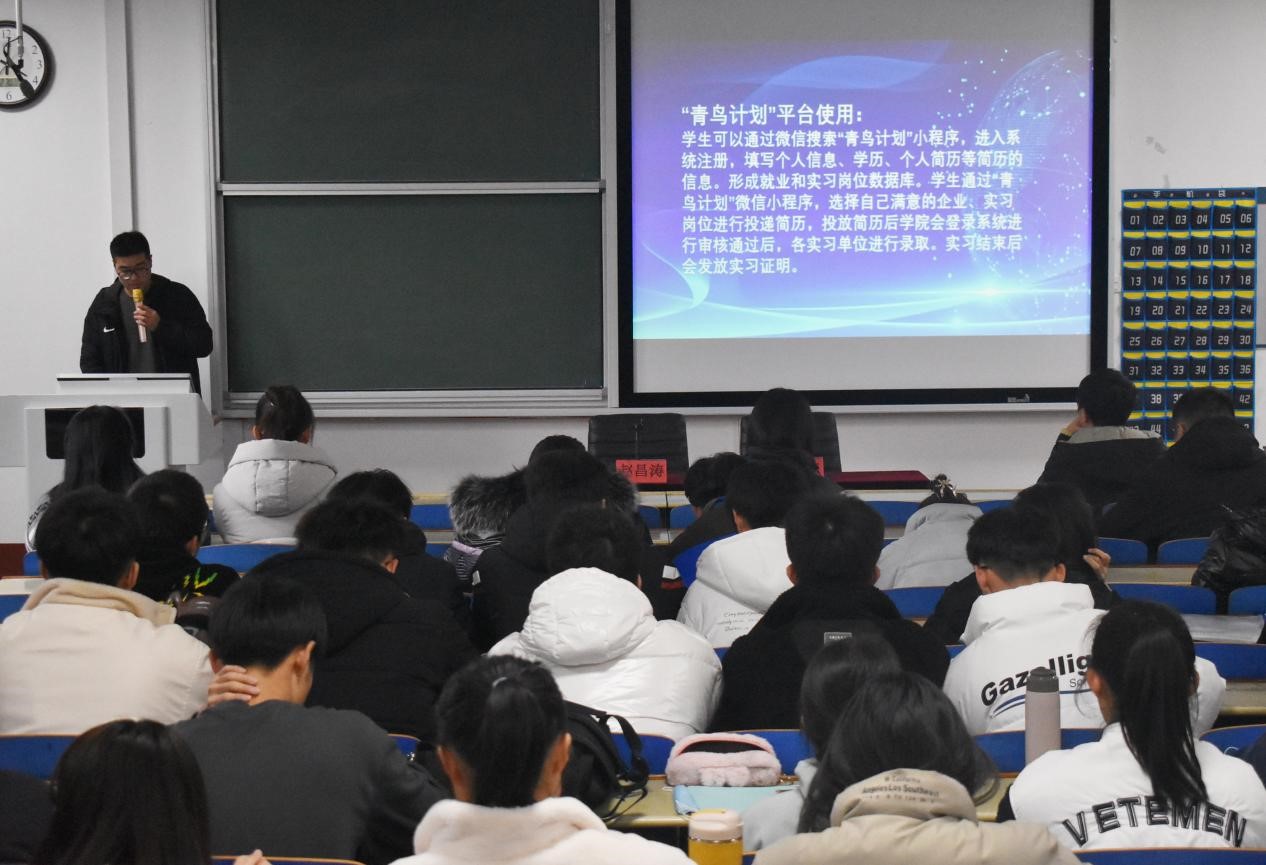 活动开始,赵昌涛老师向同学们解释“青鸟计划”的含义,简要阐述了社会实践在“青鸟计划”中的地位和作用,让同学们对“青鸟计划”有了一定的认识。五位员工代表分别从社会实践的概述、选材、流程、总结、素材收集5个方面来介绍社会实践实施过程的要点。“三下乡”、“返家乡”两个重要方针引导同学们要积极响应“引凤还巢”,回到家乡开展实践活动。程丽娟同学指出:社会实践的选材要根据社会热点,立足于当代老员工,具有可行性。她展示了几个代表性很强的社会实践故事,让同学们明白社会实践要做到面向社会、服务人民,避免“虚、大、假”。最后,王鑫老师带领着同学们探讨社会实践的意义。她强调,社会实践的目的是增长员工的才干,为社会做贡献。王老师的讲话使同学们进一步认识到社会实践提升能力,促进成长的作用。