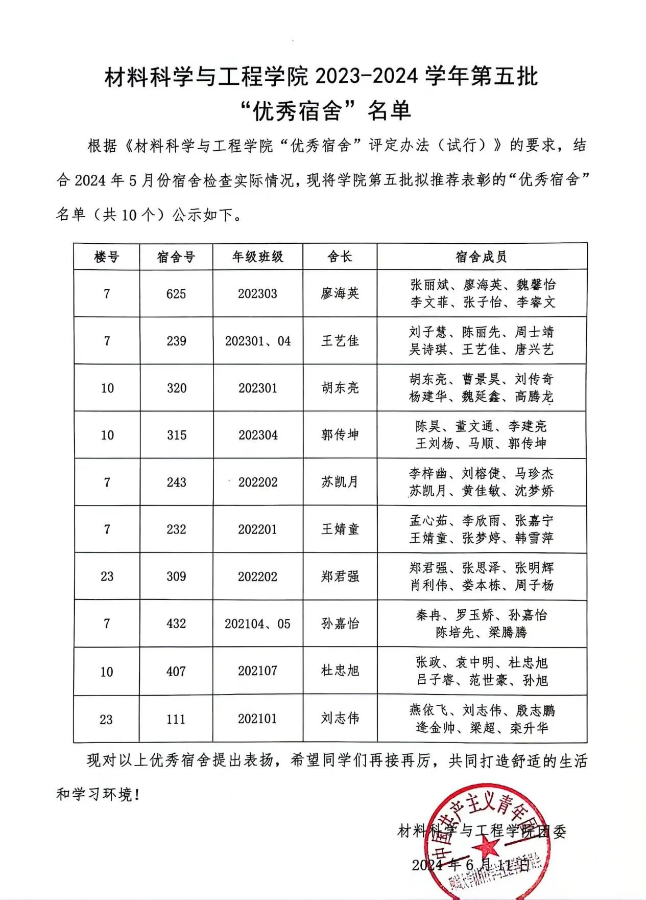 公司开展2023-2024学年第五批“优秀宿舍”评选活动