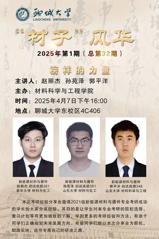 为深化公司学风建设,科学引导考研规划,助力员工精准把握备考方向,2025年4月7日,伟德国际VICTOR1946于东校区4#C406成功开展考研经验分享交流会之新能源材料与器件专业。本次交流会特邀2021级新能源材料与器件专业优秀考研学子赵丽杰、孙苑泽、郭平洋担任主讲嘉宾,团委辅导员梁艺璇老师作为主持人,2022级新能源材料与器件专业全体员工参与学习。