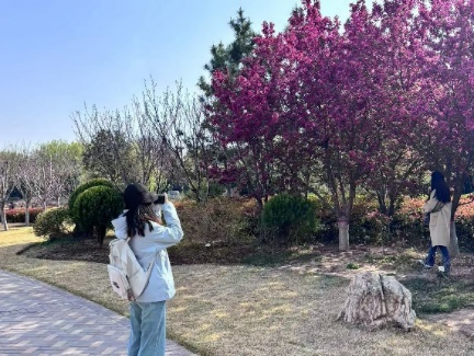 活动以趣味破冰游戏“名字接龙”拉开序幕,参与者通过链式记忆互动迅速拉近距离,现场气氛轻松活跃。随后,“自然寻宝”环节将理论与实践结合,各小组根据线索在植物园内寻找特定植物标本,既锻炼了观察力与逻辑思维,又深化了团队协作默契。在“最美光影”摄影挑战中,同学们用镜头记录春日花海、光影交错的自然之美,以艺术创作舒缓压力,激发灵感。自由活动期间,参与者漫步林间小径,畅谈学术与生活,将自然观察与科研思维有机融合,实现身心双重调适。
