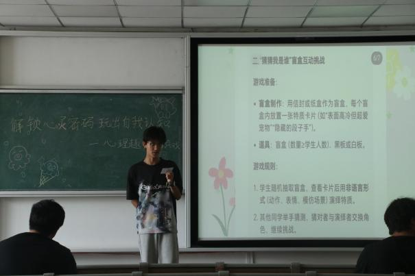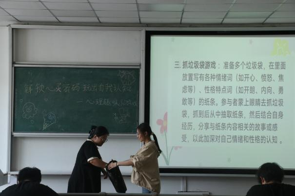 本次活动共设计了四项兼具趣味性与教育意义的心理互动环节。在“镜像反转挑战”中,参与者两人一组,通过动作模仿与反向协调,不仅锻炼了反应能力,更深刻体会到人际交往中理解与配合的重要性;最具创意的“猜猜我是谁”盲盒互动环节将活动推向高潮。参与者通过随机抽取特制卡片,运用非语言方式进行生动演绎。这种独特的表达形式既考验了同学们的观察力和表现力,又引发了大家对人格多样性及自我特质的深入思考。