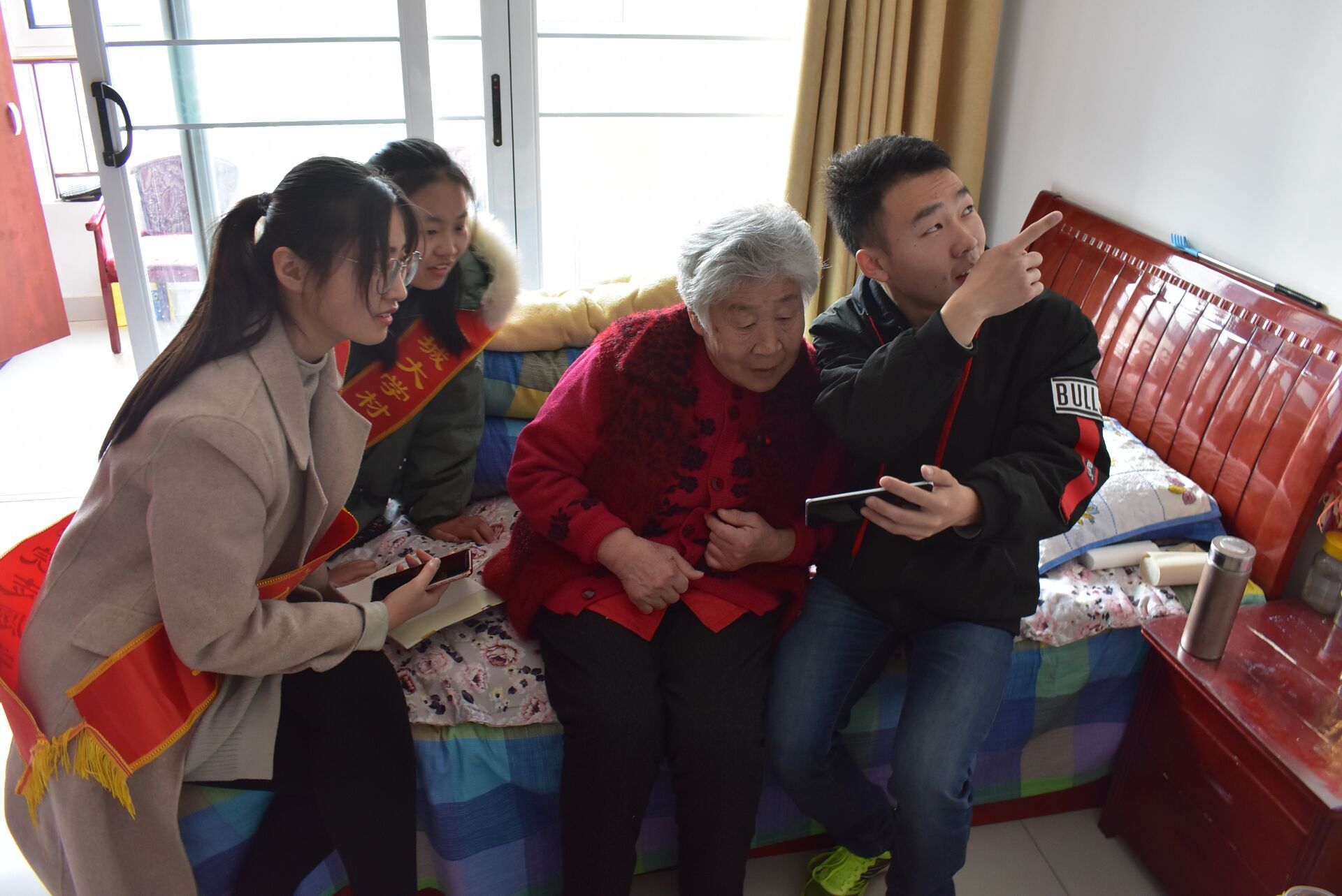 志愿者们沐浴着温暖的阳光来到了社会福利院,在帮助老人们打扫完卫生之后送上了精心准备的小节目,引得老人阵阵的笑声;并将提前准备的小礼品分给老人,老人们也表示十分喜欢。