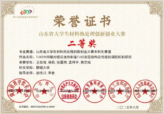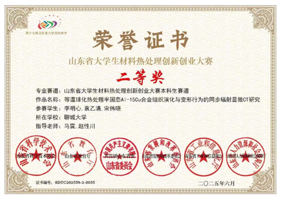 山东省老员工材料热处理创新创业大赛本科生赛道 |