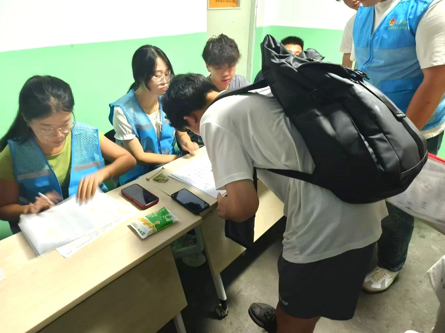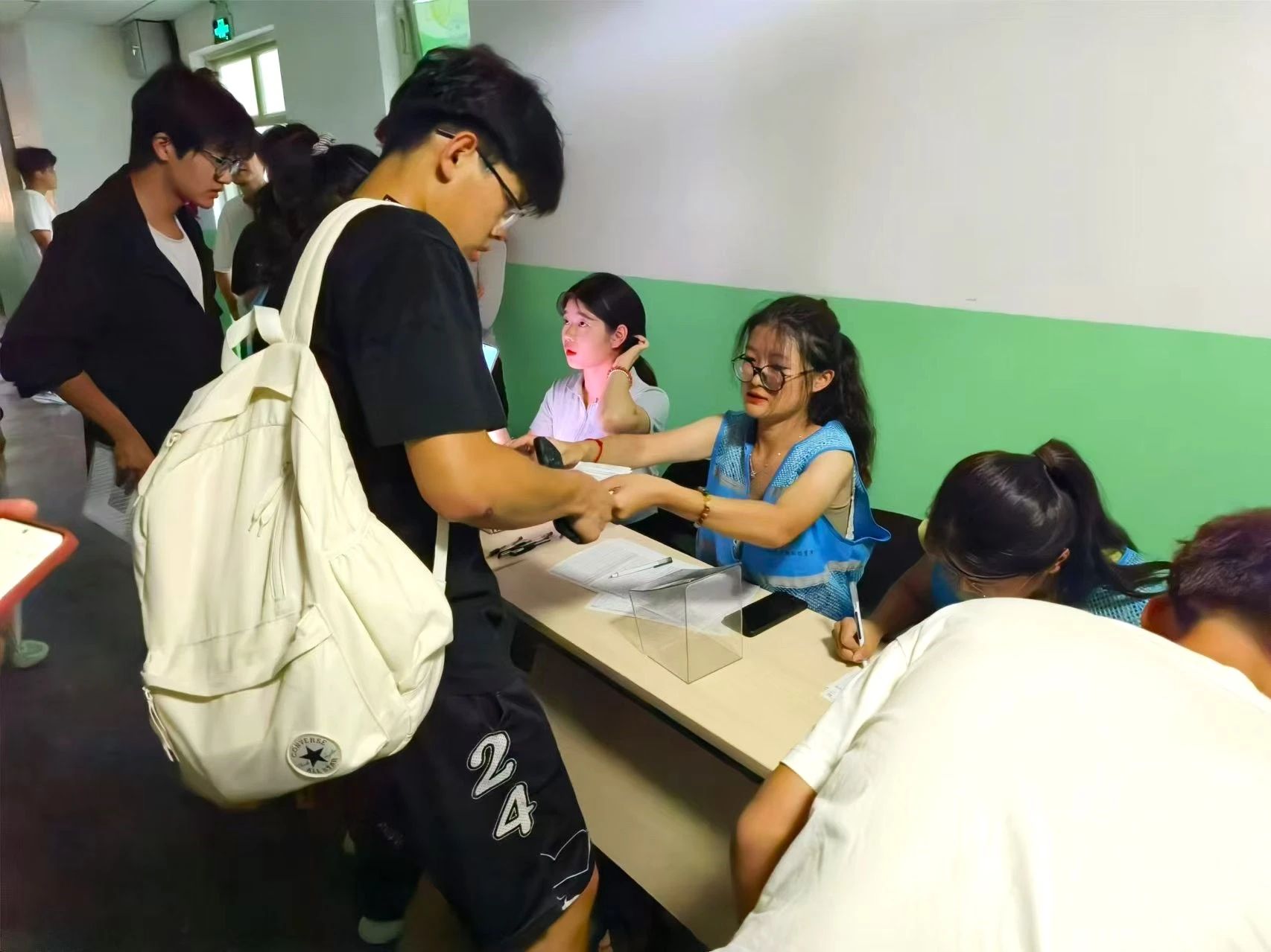 迎新现场,志愿者们早早到达公司服务点,有条不紊地展开各项工作,核实信息、查验证件、完成登记等环节高效推进,并在此过程中热心解答新生及家长的疑惑,以真情传递公司“博学明德,立志成才”的精神风貌。