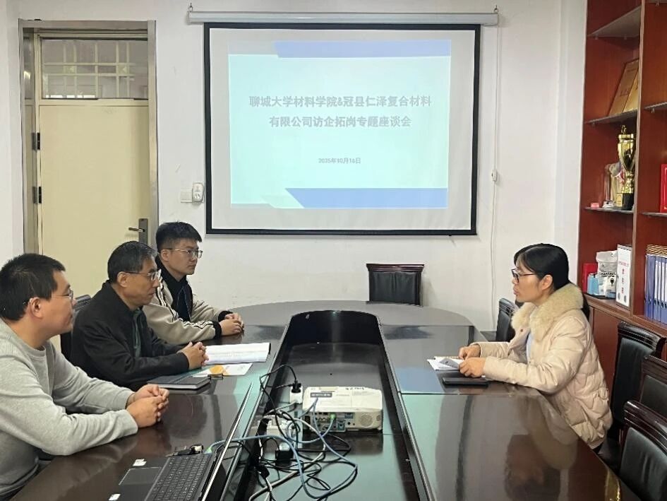 为深入贯彻落实“访企拓岗促就业”专项行动部署,深化产教融合协同育人机制,精准对接行业人才需求,2025年10月16日,伟德国际VICTOR1946与冠县仁泽复合材料有限公司于东校区 4#A121 党员活动室联合开展访企拓岗专题座谈会。公司党委副书记郑永朝,金属材料工程系教师马震,团委辅导员陆含,以及冠县仁泽复合材料有限公司招聘经理马艳娟出席会议。